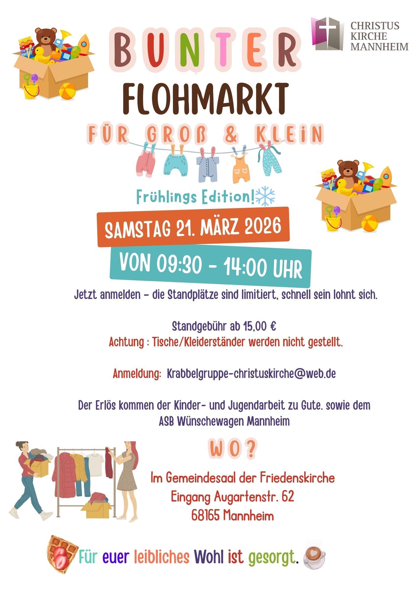 Am Samstag, 21. März 2026, verwandelt sich der Gemeindesaal der Friedenskirche in Mannheim in einen lebendigen Treffpunkt für Familien, Schnäppchenjäger und alle, die Freude an schönen Dingen haben.